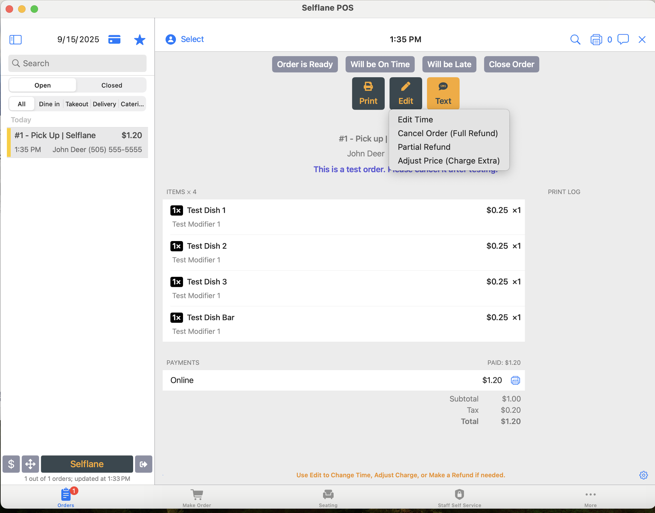 You can cancel an online order from the POS app. After canceling the order, we will issue the customer a full refund. Please provide a reason for canceling the order. We will send the reason to the customer in the cancellation email.